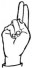 На ћирилици написано МИЛИН ПУОВАЦ састоји се из 11 слова [?]. Исписано ћириличном једноручном азбуком за глувонеме: